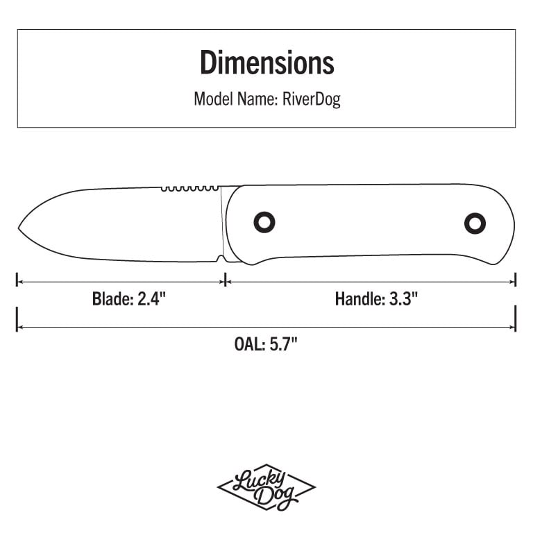Inspired by the classic canoe pattern slip joint, the RiverDog is our interpretation in a modern EDC pocket fixed blade. Each knife is waterjet cut, heat treated, and handmade from the knife blank and will vary slightly from one to another.